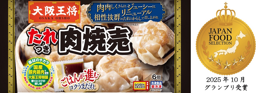 株式会社イートアンドフーズ(東京ヘッドオフィス:東京都品川区 代表取締役社長:仲田浩康)は、一般社団法人日本フードアナリスト協会が主催の「ジャパン・フード・セレクション」にて冷凍焼売『大阪王将 たれつき肉焼売』が、最高評価のグランプリを受賞しましたのでお知らせいたします。