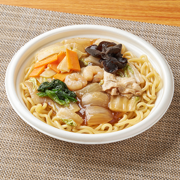 『大阪王将監修 五目あんかけ焼そば』は、醤油とオイスターソースをベースに魚介やお肉の旨みを効かせた大阪王将特製だれを使用。具材は彩り豊かに、海老、豚肉、白菜、玉ねぎ、人参、たけのこ、木耳、ほうれん草の8種類をトッピング。2026年1月27日(火)から発売です。