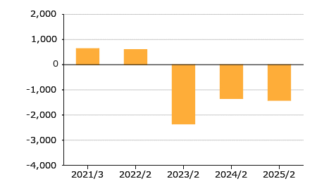 | フリーキャッシュ・フロー | 638 | 593 | △2,354 | △1,335 | △1,417 |