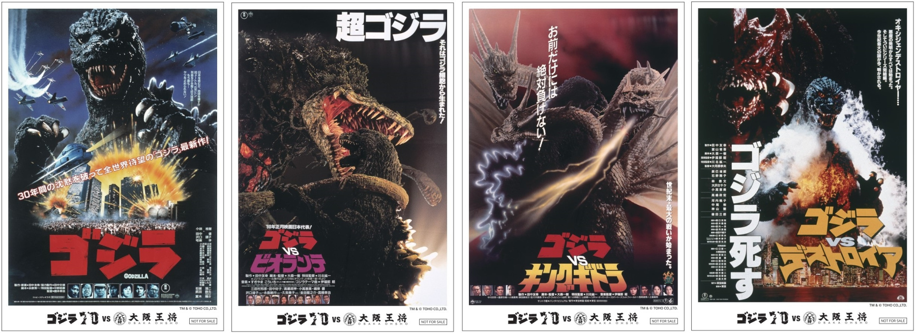 「怪獣王ゴジラ 大阪王将上陸キャンペーン」は、食べておいしい!見つけて楽しい!だけではありません。ゴジラ限定メニューを1品ご注文につき「怪獣王ゴジラ 大阪王将上陸キャンペーン」限定のポストカードを1枚、お渡しいたします。子どもの頃に衝撃を受けた“あの”タイトル、お気に入りの作品の懐かしいシーンが蘇る。全8種類のデザインを、2つの会期でそれぞれ4種ご用意しています。ゴジラ70周年と大阪王将55周年のロゴ入り、「ゴジラ平成・VSシリーズ」を振り返るに相応しい8つのデザインのポストカードです。11/14~12/4(前半)
