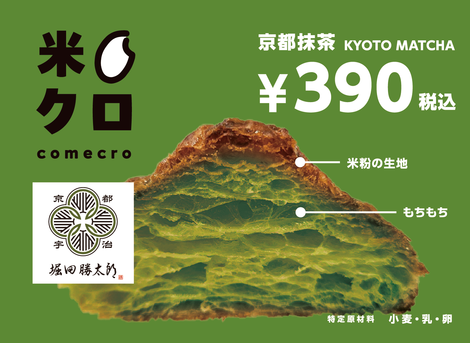 R Bakerは『心とからだにおいしいパンを』をコンセプトに、こだわりの国産米粉をメイン材料に使用し、もっちり、しっとりとした食感が特徴のパンを作っています。特に、看板商品の『のびーるクロワッサン』は、外はクロワッサンのサクサク、中はお餅のようにのびる新食感が魅力で、SNSで500万回再生、毎日5,000個が完売するなどご好評をいただいております。この『のびーるクロワッサン』は、今春に、もっと美味しくのびるようにと配合を見直すことで、『もっとのびーるクロワッサン』にバージョンアップ。そしてこのたび、京都宇治の老舗「堀田勝太郎商店」の抹茶を贅沢に使用した新フレーバー『抹茶ののびーるクロワッサン』が期間限定で登場します。また、サクッとした食感が人気の米粉のクロワッサン『米クロ』も抹茶フレーバーが登場。「堀田勝太郎商店」の抹茶は後火二度焙煎をしているのが特徴の一つで、そのためパンに練りこんで焼くと、パンの断面は鮮やかな緑色に、さらに風味も豊かになります。抹茶の濃厚な味わいのパンをお楽しみください。