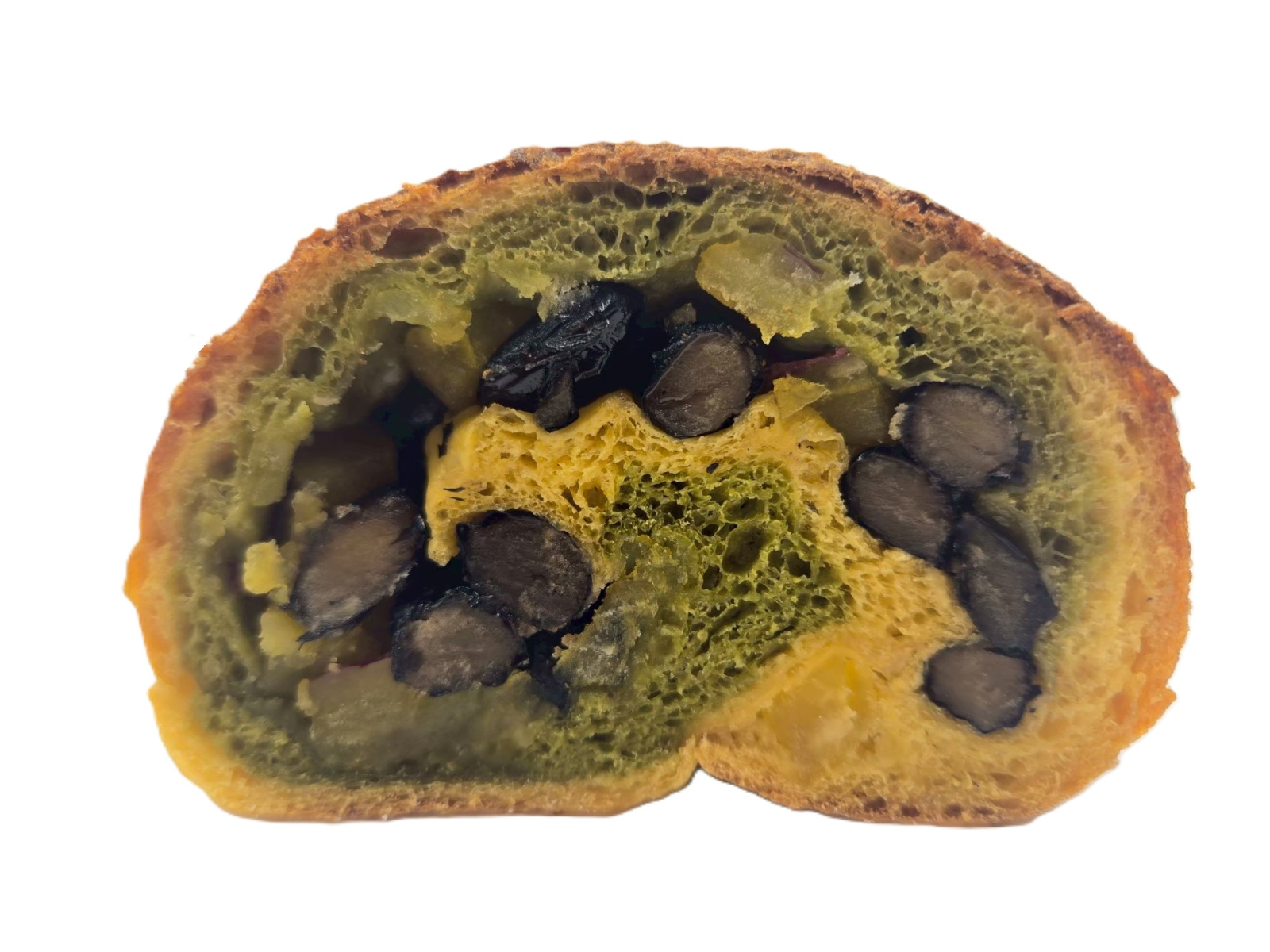 黒豆と鳴門金時(抹茶生地×かぼちゃ生地)