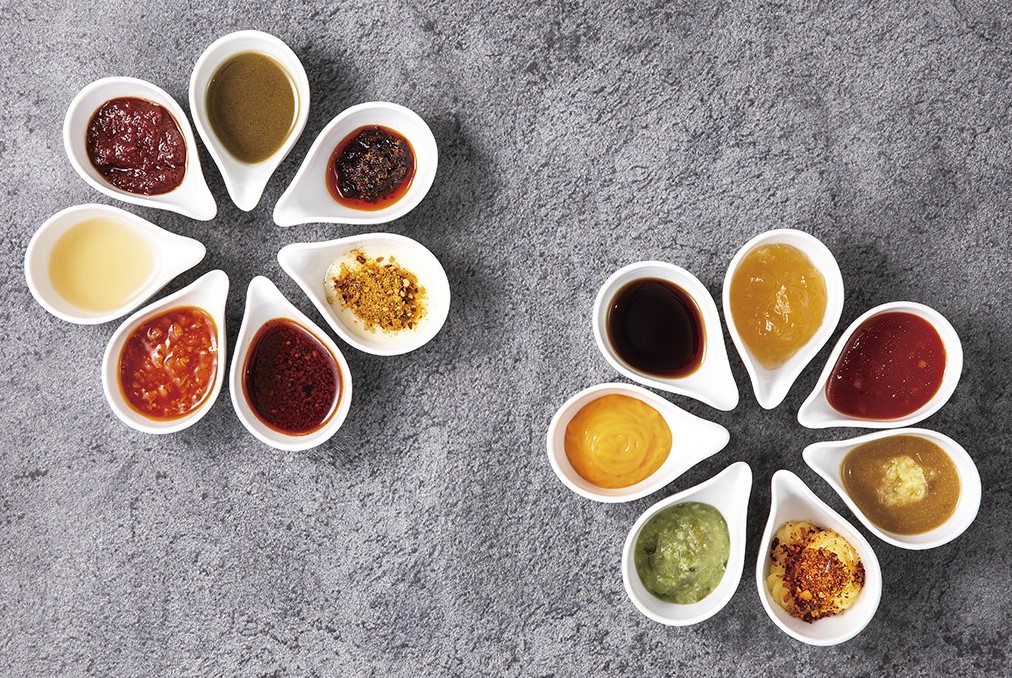 「東京都大阪王将市餃子特区」の餃子はクラフト餃子。皮から手作りし、中具にもこだわりました。焼き餃子は外食店舗で初となる“羽”のついた餃子、水餃子は中から肉汁が溢れ出す“爆汁”餃子。水餃子は中具の種類も、海老やしそ、パクチーなど、豊富にご用意しました。焼き餃子、水餃子ともに、餃子1品注文につき14種類からお好きなたれをお選びいただけるスタイルです。鉄ラー油の入った大阪王将の定番『元祖たれ』、『チーズソース』や『出汁ジュレ』などの他、『シャキシャキわさび』や『ジンジャーセサミ』などインバウンド客に評判になりそうな和風ユニークたれなど、餃子とたれの組み合わせは128通りにも!